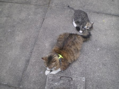 Lá vão os meus "netinhos"... já me tinha habituado a eles, aos gritos estridentes, às corridas... aos ronrons atrapalhados (ainda não sabem ronronar como gente...), mas é a minha vida e a das minhas subordinadas...